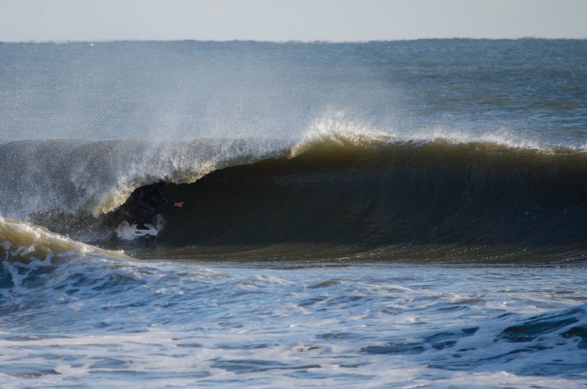 Words by John Streit. Photos by Colin Breland. “Should we go for it? It looks like it could be pretty good, but man that’s a long haul.” And so began the conversation that so often accompanies the prospect of making the nearly three-hour drive from Virginia Beach to the furthest reaches of Southside Hatteras Island. There’s a reason why it’s call the “Frisco Disco:” it’s a dance between your expectations, the day’s conditions and the fickle nature of this stretch of The Graveyard of the Atlantic. But with a healthy dose of south windswell hanging on in the teeth of a gusty and frigid northwest wind, we decided to charge toward our best chance of scoring surf on Tuesday, Nov. 18. As reports from some friends who surfed the stretch earlier in the day began to pour in, the anticipation levels ratcheted skyward. We knew there was swell in the water, but a forecast calling for the swell to fade and a late-afternoon high tide placed just a seed of doubt into our minds, no matter how small. Glances at the conditions north of Cape Hatteras’ bend provided more encouragement, but the race was on to get wet before sunset. The first look over the dunes on the Southside erased all of the nagging doubts. With the trip instantly validated, it was a mad dash to suit up and take advantage of the gift of fun surf as we entered the final two hours of daylight. While the waves weren’t of the “all-time” category, waist- to chest-high barrels and playful inside sections paired with a brilliant sunset made for a memorable session. The view from the top deck of the Buxton Hotels stretch produced some photogenic moments, but we were destined to continue the search to the Southside. Photo: Breland. The Lighthouse offered a sheltered peak from the persistent northwest winds. If you look closely at the horizon, you can see some massive swells breaking out to sea across Diamond Shoals. Photo: Breland. The anticipation builds. Photo: Breland. Pull up and score! Photo: Breland. The previous vista has S&A teammates John Streit and Julian Smith scrambling to suit up for the last light session. Photo: Breland. This unidentified surfer brought a well-balanced attack to the Southside. Photo: Breland. The same unidentified ripper gets low for a backside tube. Photo: Breland. Unidentified throws a fan into the afternoon light. Photo: Breland. Julian Smith sets up on a pretty peeler. Photo: Breland. Brian McArthur hooks it back to the pocket. Photo: Breland. John Streit lays a rail into an inside section. Photo: Breland. The waves barreled on the outside before softening up on the inside trough, providing an open face for big turns like this one from Julian Smith. Photo: Breland. Jetty team rider Dallas Tolson powers through the inside. Photo: Breland. Julian Smith. Photo: Breland. Another frontside hook from Julian Smith. Photo: Breland. Another unidentified surfer banks an off-the-top. Photo: Breland. Julian Smith pulling in. Photo: Breland. A backside rock-n-roll from John Streit. Photo: Breland. Brian Bassett finds fine form on his frontside. Photo: Breland. As a brilliant sunset unfolded, so did this gem of a left with Brian Bassett along for the ride. Photo: Breland. A breathtaking golden hour. Photo: Breland. Indescribable beauty. Photo: Breland. Leave a Reply Cancel ReplyYou must be logged in to post a comment.