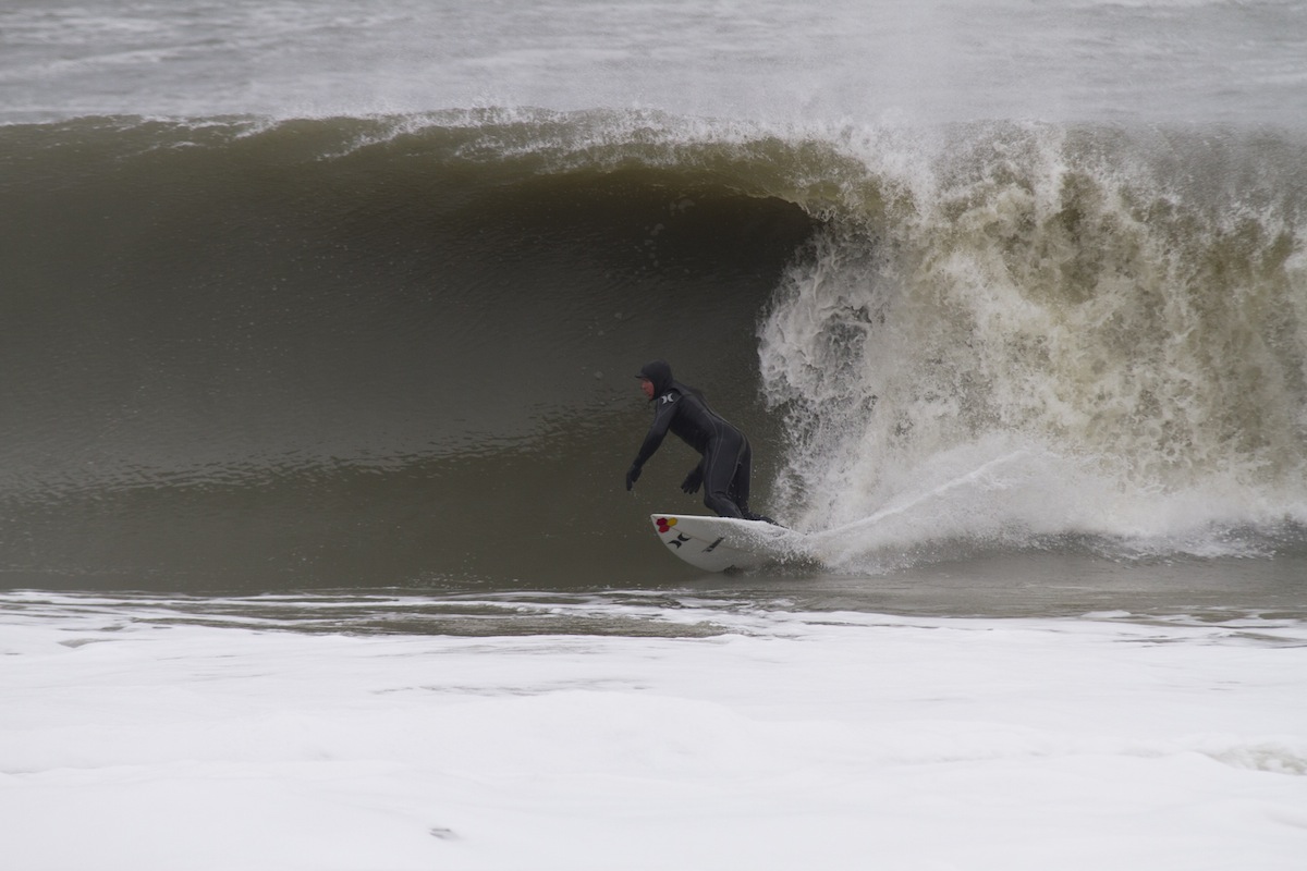 Words by John Streit. Photos by Mickey McCarthy, Eddie Compo, Billy Ficke, Jessiah Rudolph, David Drewry, Brian Bassett, John Coulson & Jordan Bartholomew. Lack of sunshine and cold temperatures aside, December is one of my favorite months of the year in surfing. The atmosphere of the northern hemisphere gets churned up, sending pulses of low pressure down from the upper lattitudes that bring winter’s chill and a steady diet of swell should the winds be in our favor. At the same time, December is the time for the dedicated, year-round surfers to enjoy the fruits of their coldwater sacrifices. Break out your step-up surfboards and wetsuits and hunker down for the colder months ahead. Historically, the frequency of swell-producing storms begins to increase during this closing month of the year and remains consistent through the winter. This swell event lit up nearly the entire East Coast, as a massive fetch of east-northeasterly wind filled in the western edge of the North Atlantic for more than a thousand miles out to sea. The result was a steady march of powerful swell that resulted in heavy beach erosion for the Outer Banks, with Highway 12 experiencing wash-overs at S-Turns in Rodanthe and the Hotels area of Buxton. As the swell began to ease, the winds turned more favorable for southeast-facing beaches like Ocean City, Md. and Buxton on Wednesday, Dec. 10. Join us as we take a day trip from the Delmarva Peninsula, into the Chesapeake Bay and down the Outer Banks to Cape Hatteras. Virginia Beach photographer Eddie Compo and his fellow Wildlyfe crewmates converged at Ocean City, Md. on Wednesday, Dec. 10. Photo: Compo (The Wildlyfe). Raven Lundy driving deep in the barrel and very close to the beach.Photo: Compo (The Wildlyfe). Drew Meredith hooks it under the lip of this menacing peak. Photo: Compo (The Wildlyfe). Wide open on a thick, frothy one; Drew Meredith stylin' in a heavy spot. Photo: Compo (The Wildlyfe). Delmarva stalwart Colin Herlihy sizes up a runner close to home. Photo: Compo (The Wildlyfe). Raven Lundy trims into a big Ocean City drainer. 1 of 2. Photo: Compo (The Wildlyfe). Raven Lundy, 2 of 2. Photo: Compo (The Wildlyfe). Swells of the magnitude of our most recent nor'easter send walls of water deep into the Chesapeake Bay. This shoulder-high peeler reels off more than 15 miles away from the Atlantic Ocean. Photo: Bassett. Brian Bassett hails from the Virginia Peninsula, which from time-to-time becomes the best wave in the commonwealth. Now based in Virginia Beach, Brian gets barreled close to his childhood home and well away from the ocean. 1 of 4. Photo: Coulson. Brian Bassett, 2 of 4. Photo: Coulson. Brian Bassett, 3 of 4. Photo: Coulson. Brian Bassett, 4 of 4. Photo: Coulson. A couple of hours drive to the south, Outer Banks home boy Matt Price lays a rail into a clean bank. Photo: Rudolph. Matt Price gaffs the lip on his backhand. Photo: Rudolph. Plenty of barrels, faces and ramps: Matt Price enjoys this Outer Banks skate park. Photo: Rudolph. Despite receiving beach nourishment over the summer, the sand deposited at S-Turns couldn't hold back the fury of the nor'easter. The ocean penetrated the man-made dune where you see the backhoe, sending a rushing river of water across Highway 12. Photo: McCarthy. The battered coastline at the famed S-Turns. Photo: McCarthy. The Atlantic overtook Highway 12 again at the "Hotels" stretch at the entrance of Buxton, N.C. Just down the beach, Dallas Tolson and Jesse Hines eye their entrance into the Lighthouse lineup. Photo: McCarthy SUPERbrand rep Jesse Hines drives his PigDog model through this LIghthouse pipe. Photo: McCarthy. Virginia Beach's Michael Dunphy had to make a big temperature adjustment after spending time in Hawaii this fall. When it's pumping like this, getting fired up is no problem. Photo: McCarthy. West Coaster Luke Davis experienced just how good the Right Coast can get. Photo: McCarthy. Zack Knapp draws a picturesque line under this Lighthouse curtain. Photo: McCarthy. The Outer Banks' Cody Craig makes the decent into this against-the-grain right. Photo: Drewry. A solid northeast swell turns the Lighthouse into a long, reeling, hollow left-hand pointbreak. Photo: Drewry. Outer Banks ripper Dallas Tolson takes it to this lengthy left. Photo: Bartholomew. Hatteras' Cash Barris packed in one of the most epic pits of the year, on his backside, nonetheless. A perfect 10. 1 of 6. Photo: Bartholomew. Cash Barris, 2 of 6. Photo: Bartholomew. Cash Barris, 3 of 6. Photo: Bartholomew. Cash Barris, 4 of 6. Photo: Bartholomew. Cash Barris, 5 of 6. Photo: Bartholomew. Cash Barris, 6 of 6. Photo: Bartholomew. Top of the point at the Lighthouse. Photo: Ficke. Another toothy barrel goes unchallenged. Photo: Ficke. Chris Morris lines it up in the golden hour light. Photo: Ficke. Leave a Reply Cancel ReplyYou must be logged in to post a comment.