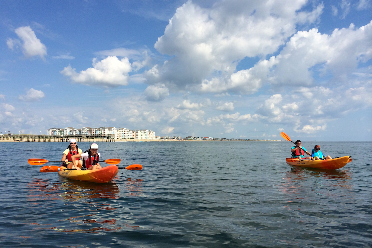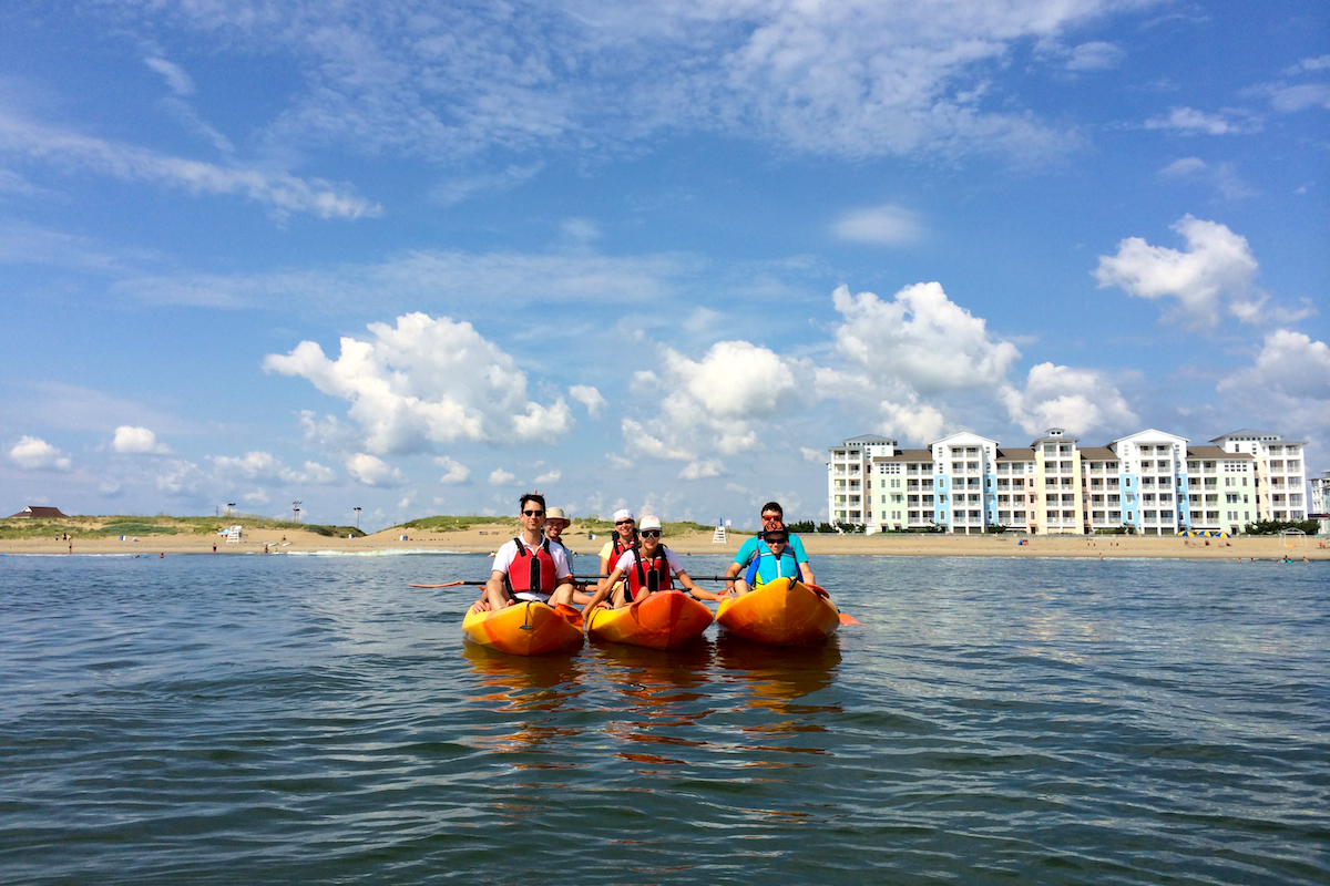 The rolling swell, flowing tides and sea breezes beckon the adventurous to strike out on the ocean with paddle in hand! Our Ocean Kayak Tours are your gateway to exploring the expansive Atlantic Ocean where it meets the sandbars off the coast of Sandbridge. This marine environment is home to ample wildlife both below and above the surface with pods of dolphins patrolling, schools of fish congregating and birds swooping in for their share of the sea’s bounty! On this July afternoon, our Ocean Kayak Tours witnessed all of the above in perfect conditions for a morning on the water. Click here to book your adventure online or give us a call at (757) 721-6210.