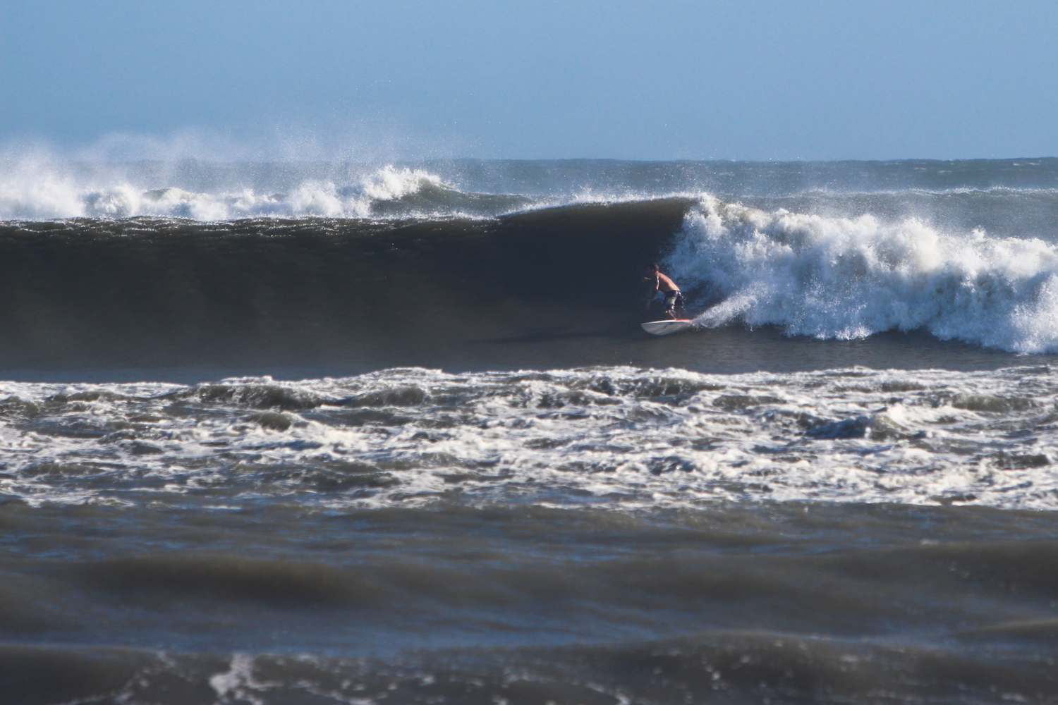 Words by John Streit. Photos by Shaun Devine, Gene Kesler & Jill Thomas. The original edition of the “Full Circle” series chronicled the epic surf journey Surf & Adventure Co. team rider Shaun Devine to one of the most remote places on Earth: New Zealand. While there, his close friend from his time in San Diego, Basil Harrison, hosted him on his family’s picturesque property in Dunedin. Together, the boys embarked on a series of trips that would become the iconic web feature that eventually landed in the pixels of Eastern Surf Magazine’s Travelers Notebook. The ebb-and-flow of life’s tides that pull against all of us have caused the friends some meteoric highs and abysmal lows since that journey in the winter of 2012/2013. Basil married his longtime partner Brit and continues on his path toward an engineering degree. Shaun, alongside Eric Coulson, launched his very successful and still-growing Party Missile Handplanes brand; which was inspired in-part by the bodysurfing sessions from the Full Circle trip. But for however positive these events were and continue to be, there were stormy seas for the boys to navigate. Like so many that have loved ones taken by cancer, Basil and Shaun had this hardship hit all-to-close to home. Basil lost his brother Marco and Shaun, his mom Debbie. In a tragic turn of events, Shaun’s dad passed away within weeks of his mother. But Basil and Shaun are extremely resilient and relentless in their battle against these hardships, inspiring all of those around them. So you can only imagine how special the gift of swell from Hurricane Cristobal was for these friends. It just so happened that Cristobal’s passing coincided with Basil’s own epic journey through North America, which landed him with Shaun for a couple of weeks of searching for waves around our region. As the photos in this three-part series show, there was special energy that surrounded the friends as they were treated to two unbelievable days of surf in the Outer Banks of North Carolina. Basil and Shaun weren’t the only ones to score Cristobal, of course. But for everyone else who glided across the waves during the swell, may they keep in mind how much of a gift the ocean and her swells are to those who surf. The east-facing beaches of the Outer Banks were in the teeth of a heavy sideshore wind on Wednesday, but jaw-dropping moments like this one in Avon could be found. Photo: Devine. Avon Pier: Made to bend, but not break in the grip of the mighty Atlantic. Photo: Devine. Around the bend of Cape Hatteras, the beaches face south. The wind was howling straight offshore and the stretch faced directly into the path of Cristobal, translating into pumping conditions. The length of the paddle out and pulsing, heavy swell won the battle against most of challenged it. Photo: Devine. This bodyboarder was one of those who went toe-to-toe with Cristobal in Frisco. It didn't end well for him on this one. 1 of 4. Photo: Devine. 2 of 4. Photo: Devine. 3 of 4. Photo: Devine. 4 of 4. Photo: Devine. Mysto perfection and some beautiful Gulf Stream water out the back. Photo: Devine. It's hard to tell how big the outside sets breaking over distant shoals were, but the well-overhead bomb on the inside in this photo offers some perspective. Photo: Devine. It's hard believe the end of Frisco Pier is still holding on, considering the beating it takes on a regular basis from powerful surf. Photo: Devine. There was a step-off crew scoring some insane tubes. On days like this when the bottom is dropping out, the best chance for success is with jet ski assistance. Photo: Devine. The ghost of Frisco Pier casts an eerie frame on Cristobal's bombs. Photo: Devine. Here's Nat Day racing for coverage on a frothy one. As it turns out, Nat is from New Zealand and went to college near Basil's hometown of Dunedin. Small world, indeed. 1 of 2. Photo: Devine. Nat Day. 2 of 2. Photo: Devine. Though he's far from an Outer Banks local, Nat shined as one of the best surfers in the water for the Cristobal swell. 1 of 2. Photo: Devine. Nat Day. 2 of 2. Photo: Devine. While the western breaks of Hatteras' southside began to max out in the afternoon, the boys drove on the 4x4 beach up to "The Cove" to receive some protection and more manageable conditions. But even here, the peaking swell soon turned the break into a gladiator pit. Photo: Devine. Basil Harrison watches some heavy shorebreak detonate at The Cove. Photo: Devine. Inside peeling perfection. Photo: Devine. The Cove also featured some rights mixed in the dominant lefthanders. Photo: Devine. The Cove offered up a steady diet of almonds. Photo: Devine. Virginia Beach's Travis Kesler fades into a right at The Cove. Photo: Kesler. Shaun Devine stalling for the tube. Photo: Kesler. Shaun Devine negotiates a macking closeout to miss the guillotine. Photo: Kesler. One of the most photogenic places on the East Coast, Basil Harrison takes it all in at The Cove in the golden afternoon light. Photo: Devine. The raw power of Cristobal was on display during a stunning sunset. Photo: Devine. Hollow, thick and pumping: The excitement builds for what tomorrow would bring. Photo: Devine. As is always the case, especially with hurricanes that approach from such a southerly angle, Sandbridge was markedly smaller than the southern Outer Banks. Still, fun sections like this one S&A owner Rob Lindauer tears down on his Walden Enigma were to be found in the sideshore conditions. 1 of 7. Photo: Thomas. Rob Lindauer. 2 of 7. Photo: Thomas. Rob Lindauer. 3 of 7. Photo: Thomas. Rob Lindauer. 4 of 7. Photo: Thomas. Rob Lindauer. 5 of 7. Photo: Thomas. Rob Lindauer. 6 of 7. Photo: Thomas. Rob Lindauer. 7 of 7. Photo: Thomas. S&A's Josh Alley tags an inside section in Sandbridge on his SUPERbrand Fling. Photo: Thomas. Craig Thomas digs into a bottom turn on his Walden Enigma SUP. Photo: Thomas. Leave a Reply Cancel ReplyYou must be logged in to post a comment.