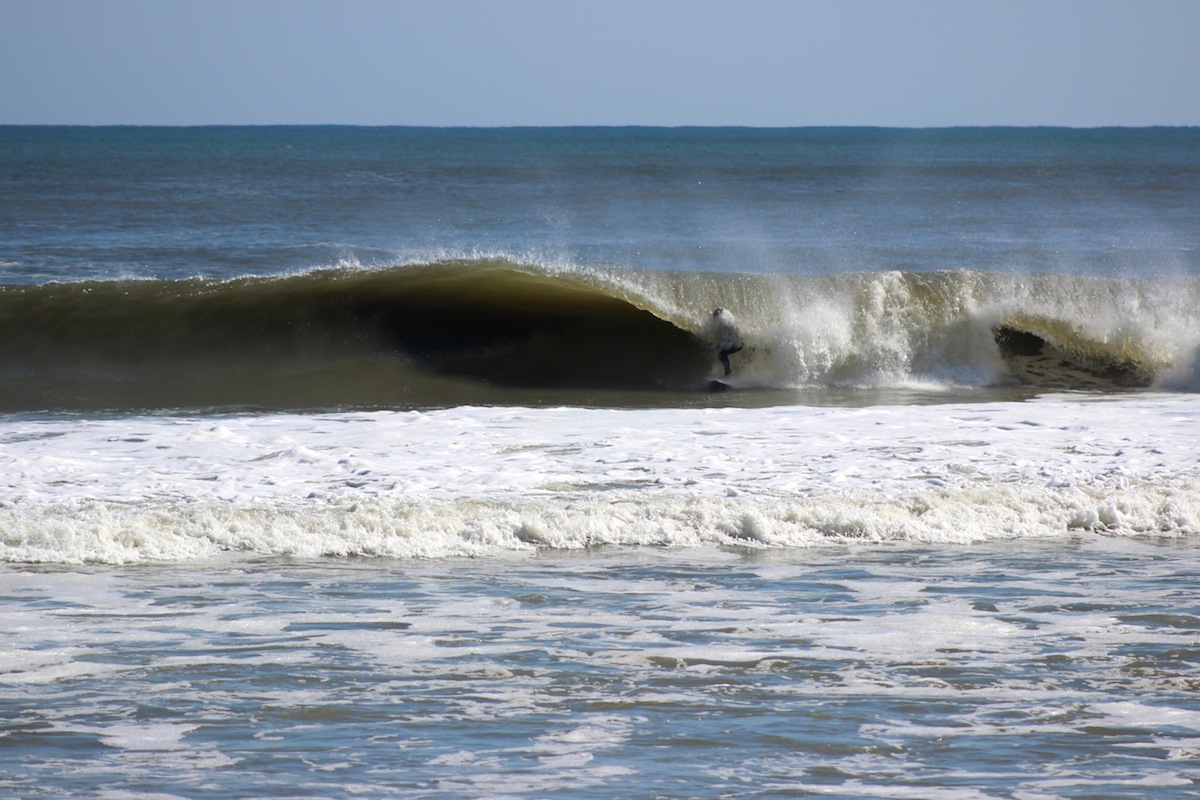 Words by John Streit. Photos by Shaun Devine, Justin Rienerth, Jennifer Phan and Allen Harcourt. Video filmed by Elliot McCallister. We bid Hurricane Gonzalo adieu with this third and final swell recap gallery. It takes a rare storm with special energy meeting ideal local wind and weather conditions to create such a photogenic swell event; and for the Outer Banks, this was certainly the case. After a historically good year of waves for our region, it’s only appropriate that our latest shot of swell had some serious staying power. Sure, we wish conditions would have come together better for our side of the border, but the moments Gonzalo spawned are unforgettable. Until next time, here’s our closing set of images to keep you amped until the Atlantic turns on yet again. With vistas like this coming a first light, you know you're out there. Photo: Rienerth. It doesn't have to be huge for Hatteras to pack a punch. This slabby shorebreak keeps Austin White on his toes. Photo: Rienerth. Another unridden kegs rolls on. Photo: Rienerth. Outer Banks legend Noah Synder has clocked more tube time along his home stretch than most. Photo: Phan. Groundhog Day on the OBX. Photo: Rienerth. Raven Lundy, slotted with style. Photo: Phan. "Dude, pull over! I heard this is the spot!" Photo: Rienerth. A late afternoon swim by Shaun Devine in Pea Island turned in some classic captures. Photo: Devine. When he's not snapping pics between sessions, S&A team rider Justin Rienerth packs pits with the best of them. Photo: Devine. Austin White with timeless style on a thick one. Photo: Rienerth. Grinding across the inside into the sunset. Photo: Devine. Golden light illuminates S&A team rider Conner Barnes at Pea Island. Photo: Devine. Did we mention there were a few righthand barrels to be had? Photo: Devine. At the right spot, a rare lefthander could be found. Photo: Harcourt. You drew setups like this in your notebook when daydreaming about surf in school. This unidentified surfer lives the dream. Photo: Rienerth. Hollow Gonzalo. Photo: Devine. I'm not sure who this is getting the axe in this photo, but it goes to show just how narrow the margin of error is on waves of this power. Photo: Rienerth. Conner Barnes, into the vortex. Photo: Devine. A majestic view from the shoulder. Photo: Devine. Six Gonzalo Waves: Brett Barley, Cody Craig (twice), Travis Kesler, Knox Harris and Andrew Meyer get barreled. Filmed by Elliot McCallister. Leave a Reply Cancel ReplyYou must be logged in to post a comment.